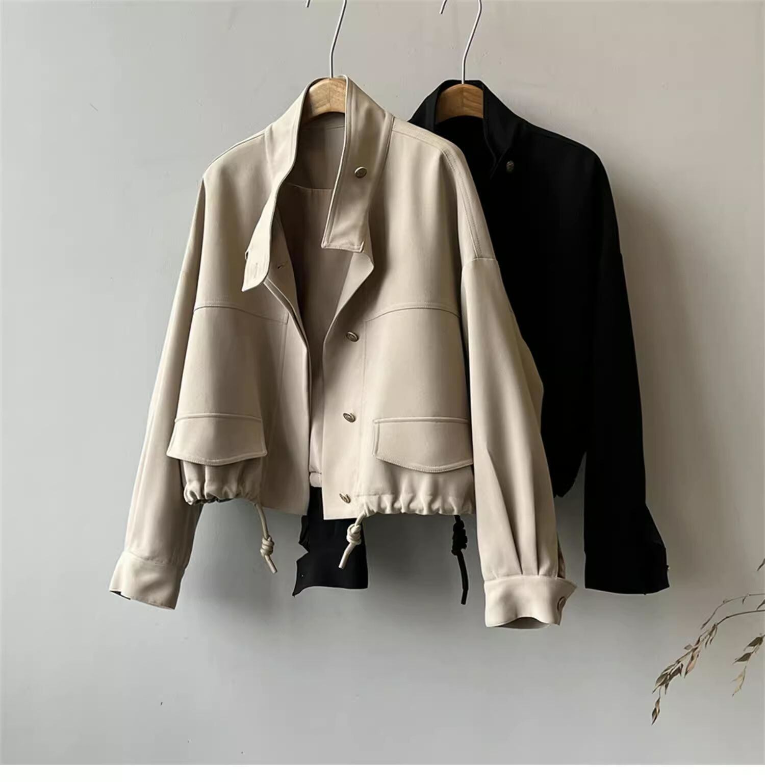 レディース ジャケット アウター 上着 長袖 ボリューム袖 ハイネック 襟付き 角襟 ふっくら ポケット 前開き ボタン 大人可愛い きれいめ カジュアル 上品 おしゃれ かっこいい レトロ エキゾチック マニッシュ ルーズ 個性的 クール モダン アメリカン アクティブ ナチュラル 無地 春 秋 学生 デート お出かけ イベント 旅行 公園 女子会 休日 ガーデン ショッピング コンサート ライブ カフェ 重ね着 楽ちん 防寒 体型カバー 普段使い 着回し ゆったり ゆる ブラック カーキ