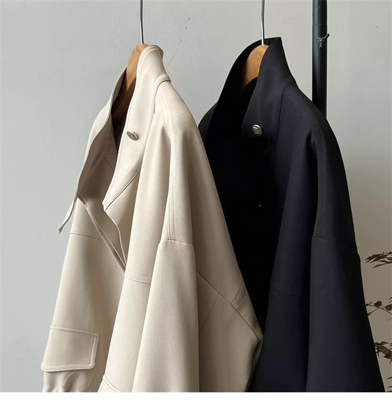 ゆったりとしたボリュームのあるデザインが特徴的なアウターです。