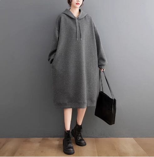 ゆったりと着られるフード付きワンピースです。