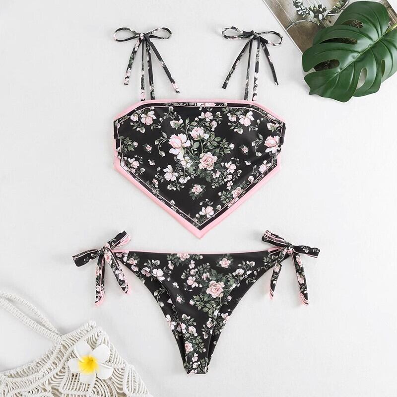 水着 ビキニ スイムウェア レディース セパレート ビスチェ ハイレグ リボン セット 上下セット かわいい 大人可愛い きれいめ カジュアル 華やか おしゃれ お洒落 存在感 ラブリー 個性的 エキゾチック アジアン セクシー フェミニン ボヘミアン 花柄 プリント リゾート 旅行 温泉 プール 夏 海 美脚 脚長 スタイルアップ 高見え プチプラ モテ 背中見せ インスタ映え S M L ホワイト ブラック イエロー 白 黒 黄色