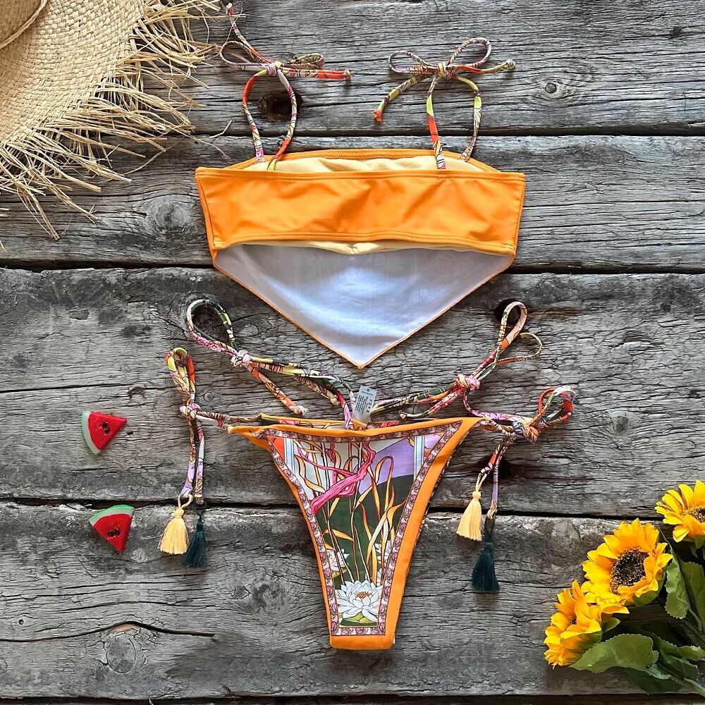 大人可愛いデザインでありながら、エキゾチックで個性的な魅力を放ちます。リボン付きのビスチェスタイルが特徴で、セクシーでフェミニンな印象を与えます。ビーチやプールサイドでの存在感は抜群!花柄のプリントが夏のリゾート気分を盛り上げ、お洒落でカジュアルなスタイルを実現できます。