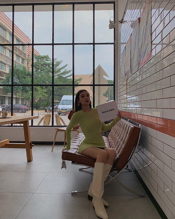 モード系のクールな魅力とこなれ感が際立ち、トレンド感あふれる都会的なスタイルに。