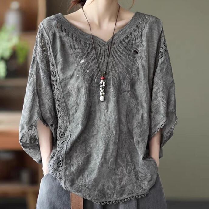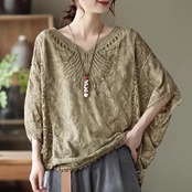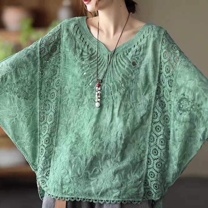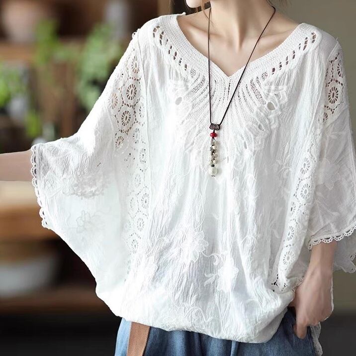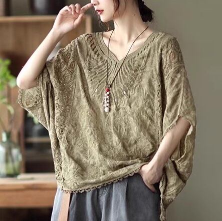 レディース トップス カットソー ドルマンスリーブ Vネック フレア オーバーサイズ レース 刺繍 フリル 透け感 シースルー かわいい 大人可愛い カジュアル おしゃれ レトロ アジアン エスニック エキゾチック こなれ感 ラフ ベーシック プレッピー カントリー アクティブ ナチュラル ファッショナブル 春 夏 リゾート 旅行 バカンス 着回し トレンド 流行 インスタ映え 白 ホワイト 黒 ブラック 茶色 ブラウン グレー ベージュ カーキ アースカラー 緑 グリーン ベーシックカラー 大人カラー