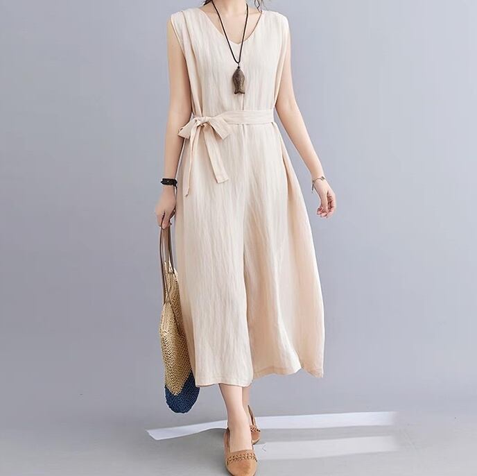 レディース ボトムス サロペット オールインワン ジャンプスーツ カバーオール フルレングス 袖なし ノースリーブ Vネック ストレート フェミニン ストリート ファスナー ハイウエスト ベルト付き かわいい 大人可愛い きれいめ シンプル カジュアル 上品 おしゃれ レトロ クール キュート クラシカル ベーシック 無地 夏 お出かけ リゾート 旅行 休日 バカンス 重ね着 韓国 オルチャン コーデ 着回し レイヤード トレンド 流行 インスタ映え ゆったり ゆる フリーサイズ クリーム 黒 ブラック