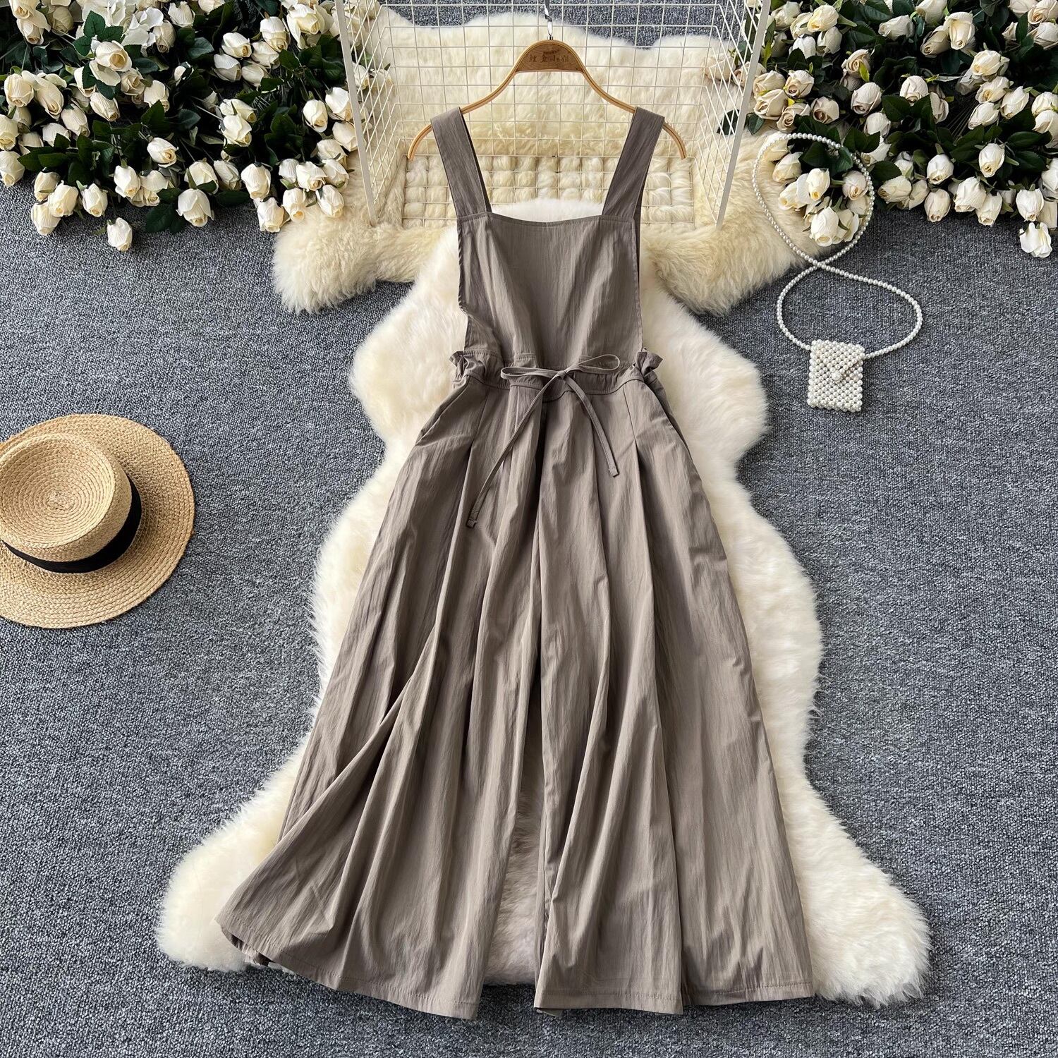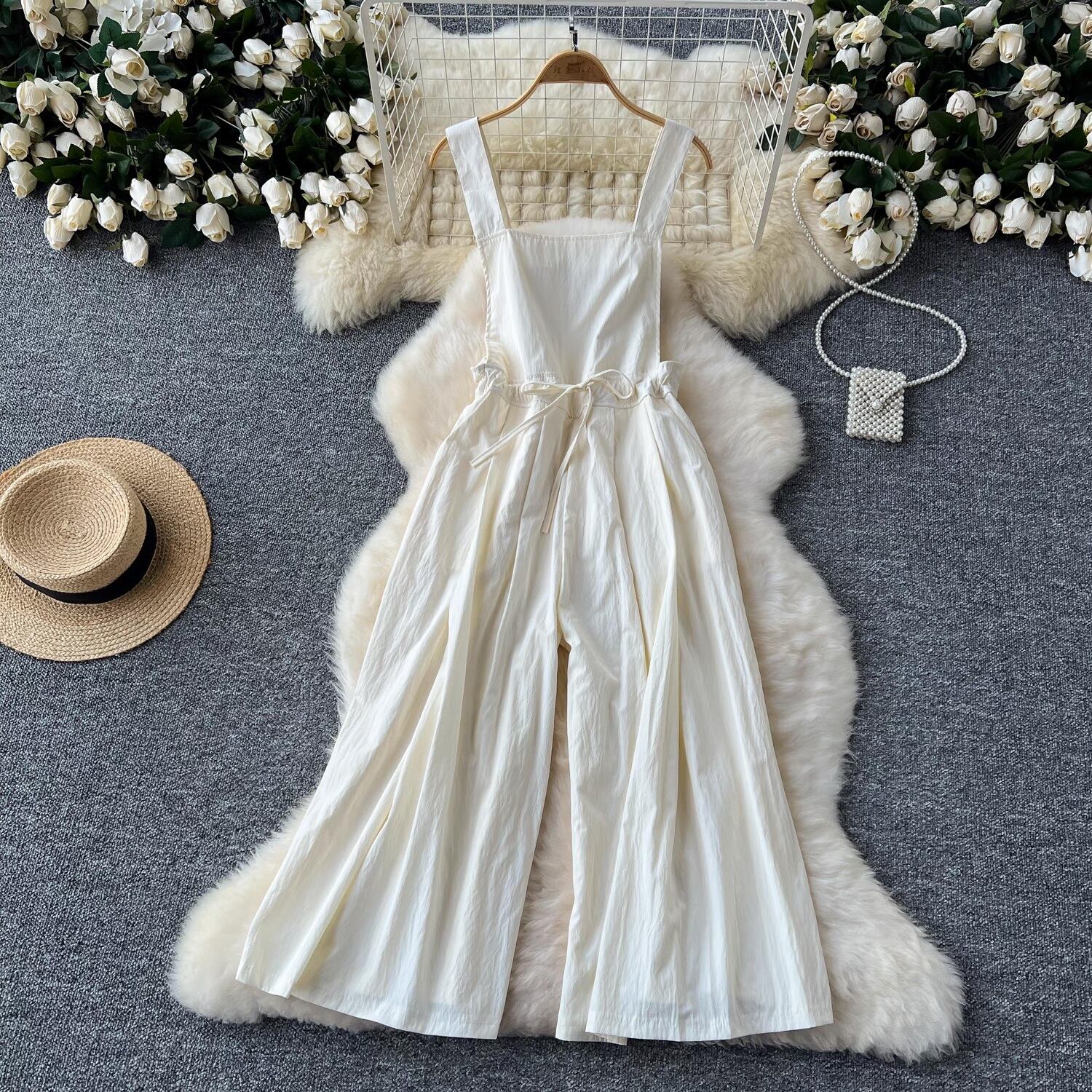 レディース ボトムス サロペット オールインワン ジャンプスーツ カバーオール フルレングス 袖なし ノースリーブ ストレート フェミニン ストリート ウエストマーク ウエストリボン ハイウエスト ドロスト かわいい 大人可愛い きれいめ シンプル カジュアル 上品 おしゃれ レトロ ラフ キュート ベーシック 無地 夏 お出かけ リゾート 旅行 休日 バカンス 重ね着 韓国 オルチャン コーデ 着回し レイヤード トレンド 流行 インスタ映え ゆったり ゆる フリーサイズ 白 ホワイト グレー ネイビー