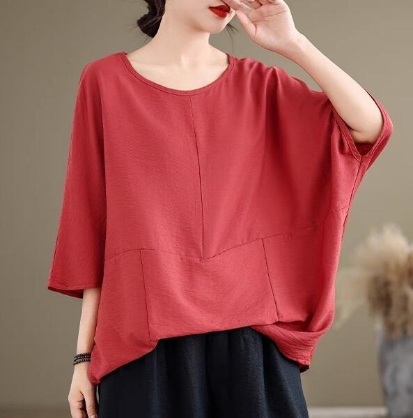 レディース トップス カットソー Tシャツ 半袖 ドルマンスリーブ ラウンドネック オーバーサイズ フェミニン ストリート かわいい 大人可愛い きれいめ シンプル カジュアル おしゃれ レトロ こなれ感 ラフ ガーリー ルーズ ベーシック プレッピー カントリー アクティブ ナチュラル ファッショナブル 無地 お出かけ 休日 韓国 オルチャン コーデ 楽ちん 体型カバー 普段使い 着回し トレンド 流行 インスタ映え 大きいサイズ ビッグ ゆったり ゆる フリーサイズ 黒 ブラック カーキ レッド