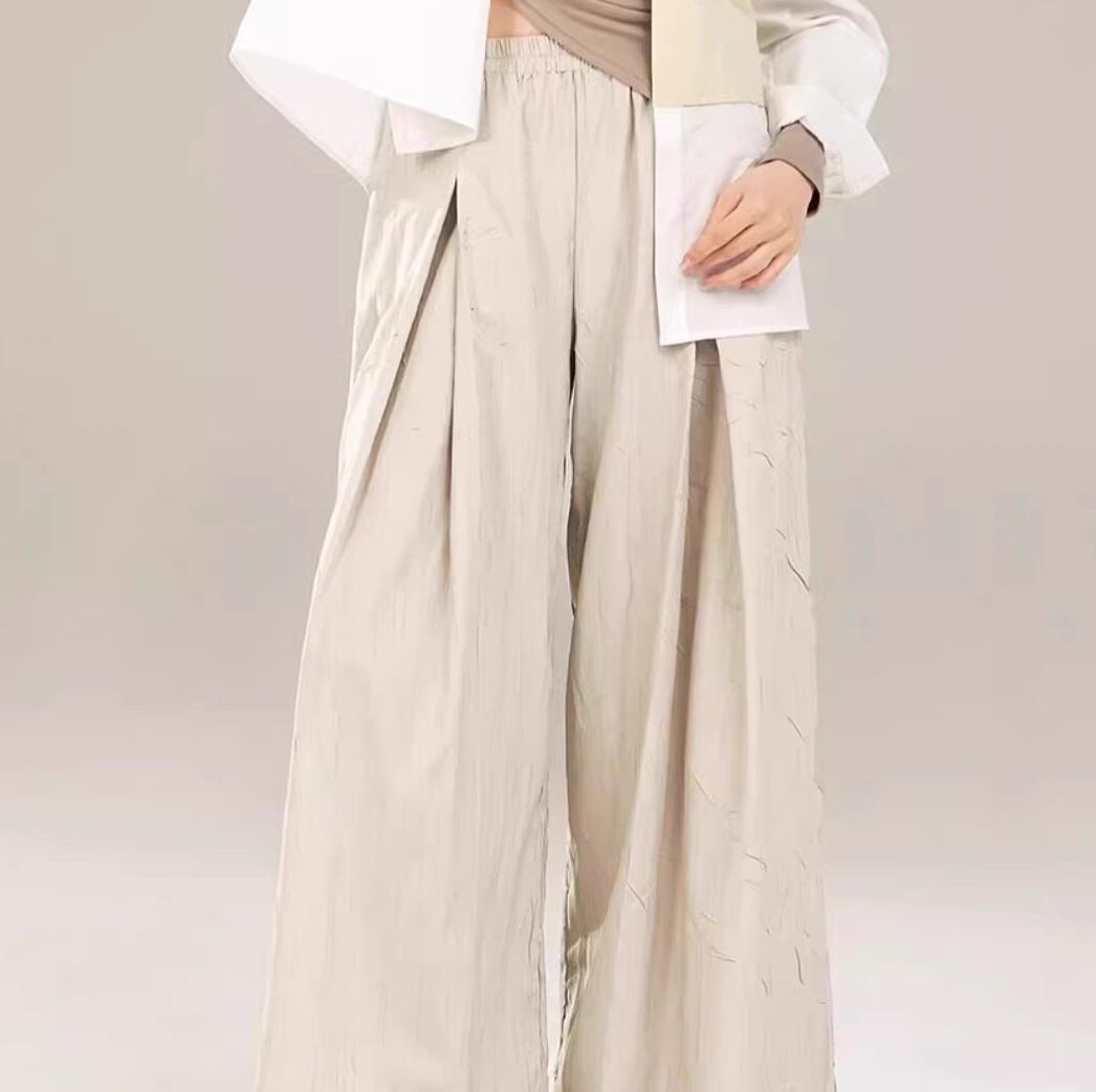 ハイウエスト&ウエストゴムでリラックス感とスタイルアップを同時に実現。