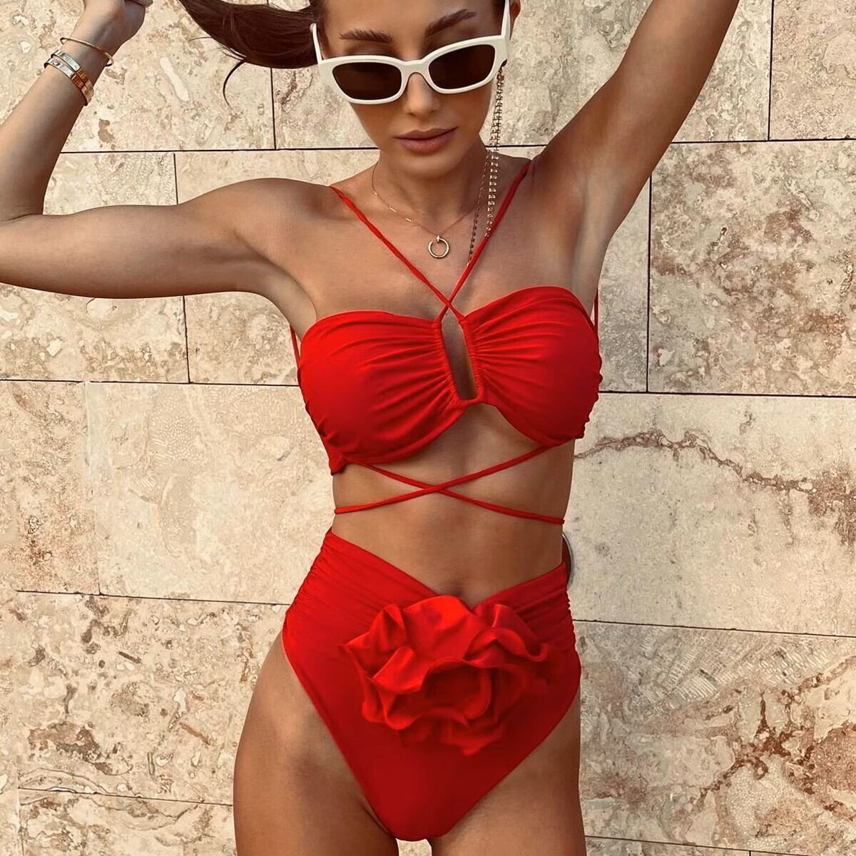 大人可愛いデザインで、あなたの魅力を引き立てます。クロスバンドとハイウエストのスタイルが脚を美しく見せ、スタイルアップ効果抜群です。シンプルながらも華やかで、ゴージャスな雰囲気を醸し出しますので、リゾートや温泉、プールで主役級の存在感を発揮します!
