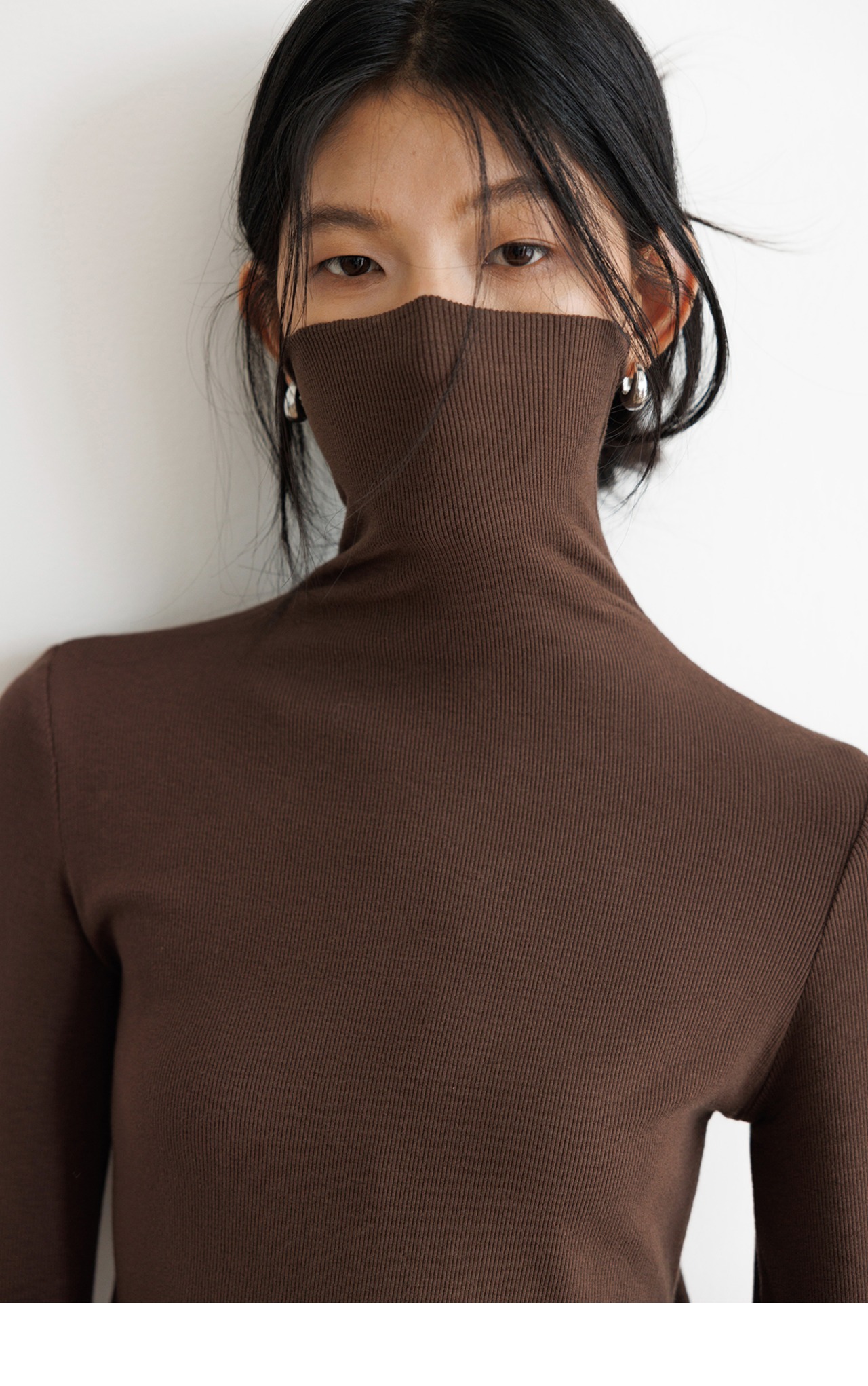 タイトシルエットのハイネックカットソーで、秋コーデに上品なこなれ感をプラス。