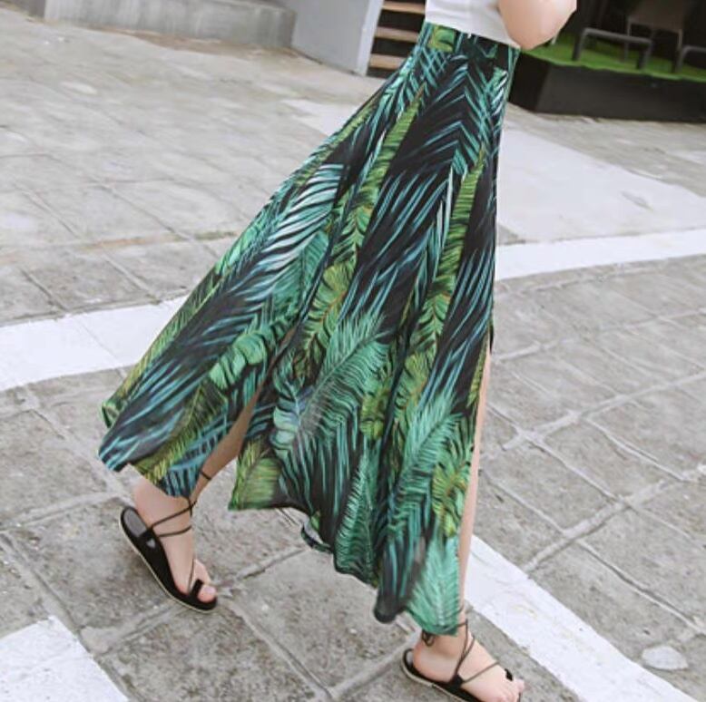 レディース スカート ボトムス フレア ロング マキシ Aライン フェミニン スリット ハイウエスト かわいい 大人可愛い きれいめ おしゃれ かっこいい レトロ エレガント 主役級 存在感 抜け感 キュート アクティブ ナチュラル ファッショナブル リーフ ボタニカル プリント お出かけ パーティー イベント リゾート 旅行 ビーチ 休日 バカンス フェス 韓国 オルチャン コーデ 体型カバー 美脚 脚長 トレンド 流行 インスタ映え S M L XL 2XL 小さいサイズ 大きいサイズ 緑 グリーン