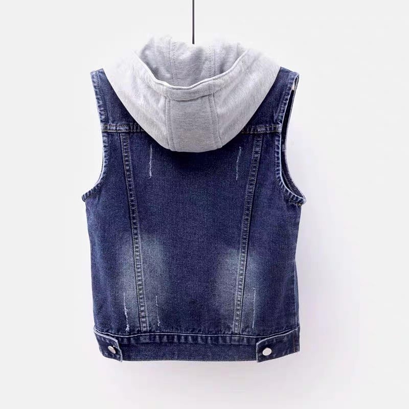 ダメージ加工がクールなフード付きデニムベストでストリートスタイルに差をつける!