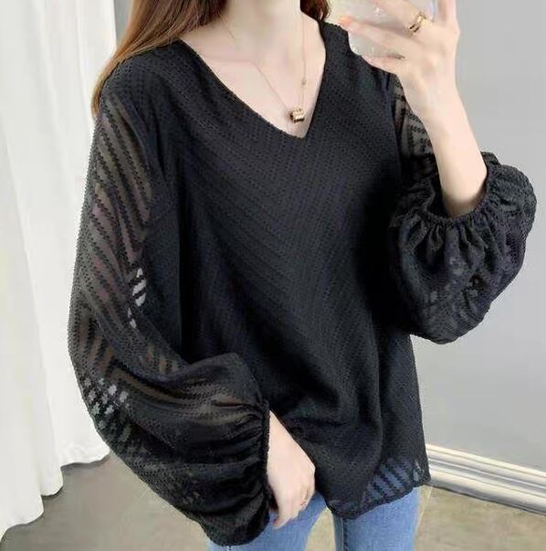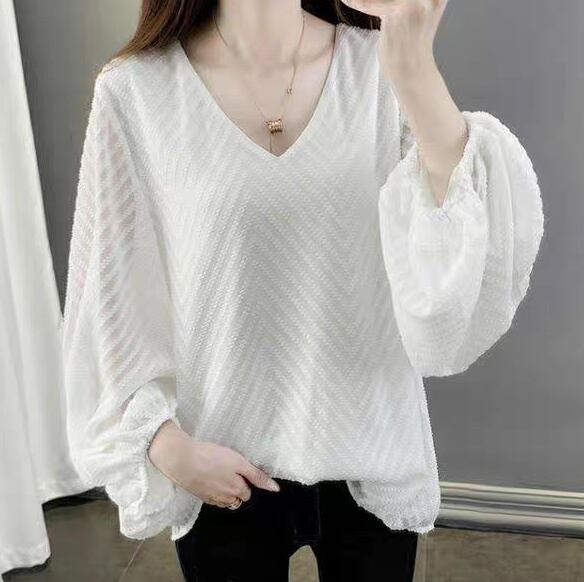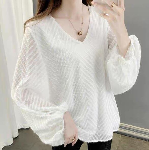 レディース トップス シャツ ブラウス プルオーバー 長袖 ボリューム袖 バルーン袖 Vネック オーバーサイズ 薄手 かわいい 大人可愛い きれいめ シンプル 上品 おしゃれ レトロ こなれ感 ガーリー エレガント ベーシック ロマンティック ナチュラル ファッショナブル 春 夏 秋 デート お出かけ 旅行 休日 モノトーン 重ね着 韓国 オルチャン 楽ちん 体型カバー 普段使い 着回し レイヤード トレンド 流行 インスタ映え M L XL 2XL 小さいサイズ 大きいサイズ 白 ホワイト 黒 ブラック