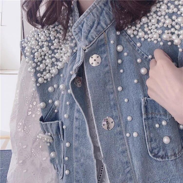 パールが贅沢にあしらわれたヴィンテージデニムベスト。