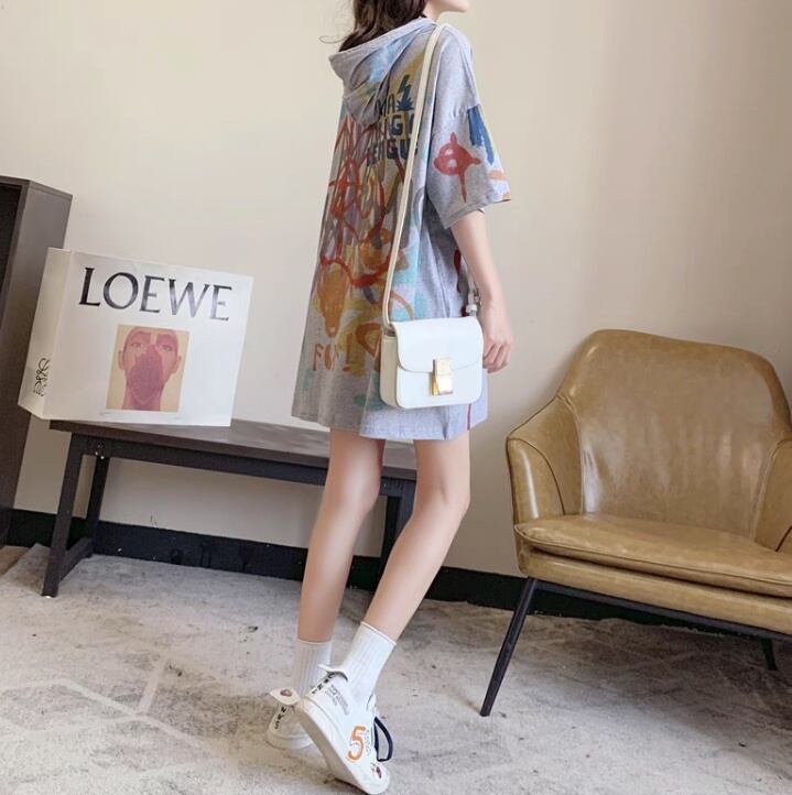 レディース トップス ワンピース プルオーバー パーカー 半袖 フード ストリート かわいい 大人可愛い カジュアル おしゃれ レトロ こなれ感 ラフ メンズライク マニッシュ ボーイッシュ スポーティー ルーズ キュート カレッジ風 ファッショナブル 総柄 学生 お出かけ アウトドア キャンプ 休日 コンサート ライブ フェス 重ね着 韓国 オルチャン 楽ちん 体型カバー 着回し レイヤード トレンド 流行 インスタ映え M L XL 2XL 大きいサイズ ビッグ ゆったり ゆる 白 ホワイト グレー