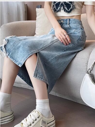レディース スカート ボトムス スリット ダメージ デニム タイト 膝下 大人可愛い シンプル カジュアル おしゃれ こなれ感 ラフ 主役級 存在感 春 夏 ママ 10代 20代 30代 ティーン お姉さん 学生 学校 通学 デート お出かけ 公園 女子会 休日 ショッピング カフェ 韓国 オルチャン コーデ 楽ちん 普段使い 着回し モテ 流行 インスタ映え 定番 XS S M L XL 2XL ブルー