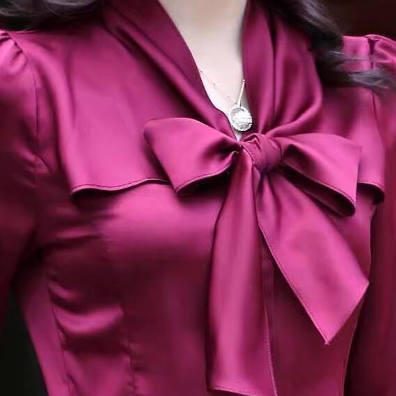 レディース トップス シャツ ブラウス 長袖 Vネック りぼんタイ フェミニン サテン かわいい 大人可愛い きれいめ 上品 おしゃれ レトロ こなれ感 ガーリー エレガント モダン 存在感 フォーマル とろみ感 抜け感 ラブリー キュート ラグジュアリー クラシカル 無地 冠婚葬祭 ママ 休日 重ね着 着回し レイヤード インスタ映え 定番 S M L XL 2XL 3XL 4XL 小さいサイズ 大きいサイズ ビッグ ゆったり ゆる 白 ホワイト 黒 ブラック 紫 ベージュ レッド 光沢 パープル