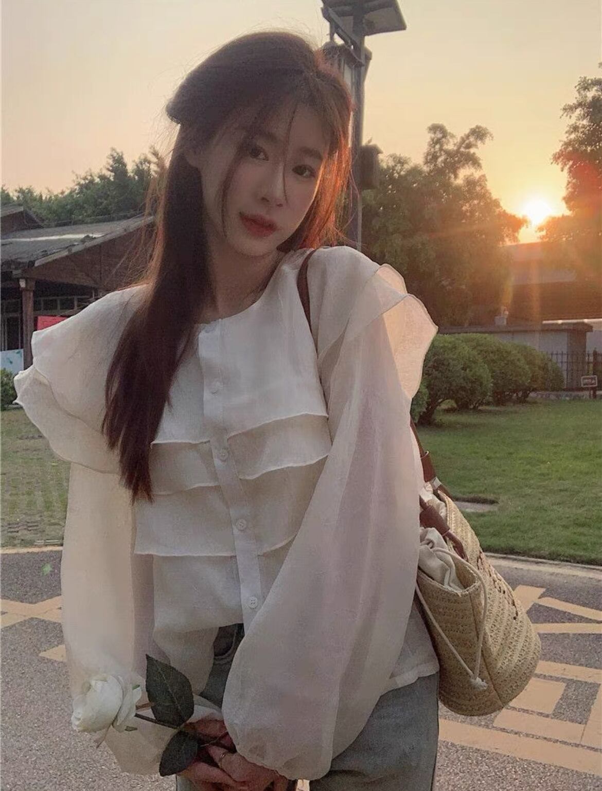 フリルで魅せる、大人可愛いフェミニンブラウス!