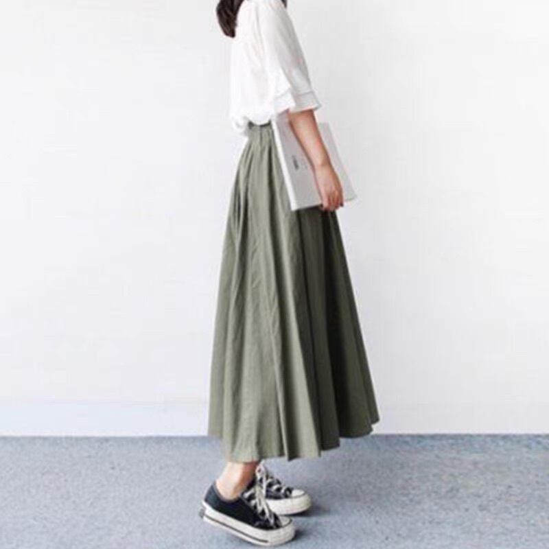 レディース スカート ボトムス フレアスカート ロングスカート ロング マキシ Aライン フェミニン ストリート ハイウエスト アメカジ きれいめ シンプル カジュアル おしゃれ ベーシック アメリカン プレッピー カントリー アクティブ ナチュラル ファッショナブル 無地 お出かけ アースカラー 体型カバー 美脚 脚長 トレンド 流行 インスタ映え 定番 S M L XL 2XL 3XL 小さいサイズ 大きいサイズ ビッグ ゆったり ゆる 黒 ブラック ベージュ カーキ 緑 グリーン ベーシックカラー