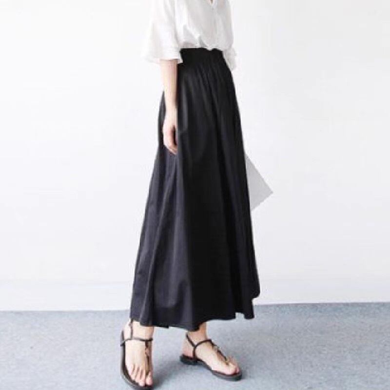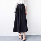 ハイウエストで美脚&脚長効果抜群のフレアロングスカート。