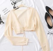 ボリューム袖が愛らしい、ハイウエストに映えるショートカーディガン。