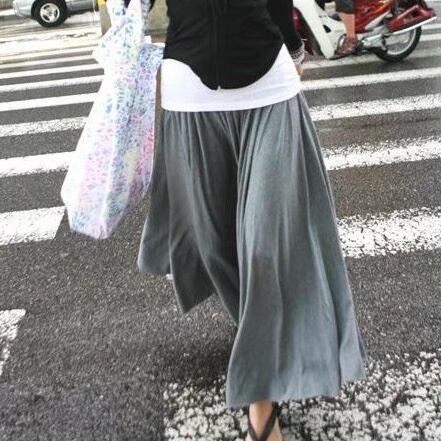 ハイウエスト&Aラインで脚長効果抜群、ウエストゴムで楽ちんな着心地。