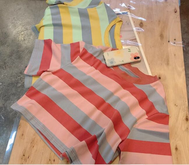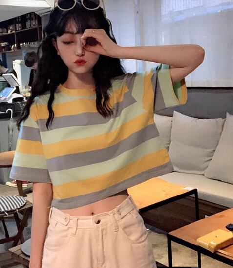レディース トップス カットソー ストライプ ショート丈 ミニ丈 半袖 ラウンドネック ワイド 大人可愛い カジュアル おしゃれ こなれ感 マニッシュ ルーズ 夏 10代 20代 30代 ティーン 通学 部活 デート お出かけ お泊まり アウトドア 公園 休日 ショッピング カフェ お揃い 双子 韓国 オルチャン コーデ 普段使い 着回し モテ トレンド インスタ映え 定番 M L XL ピンク イエロー 水色