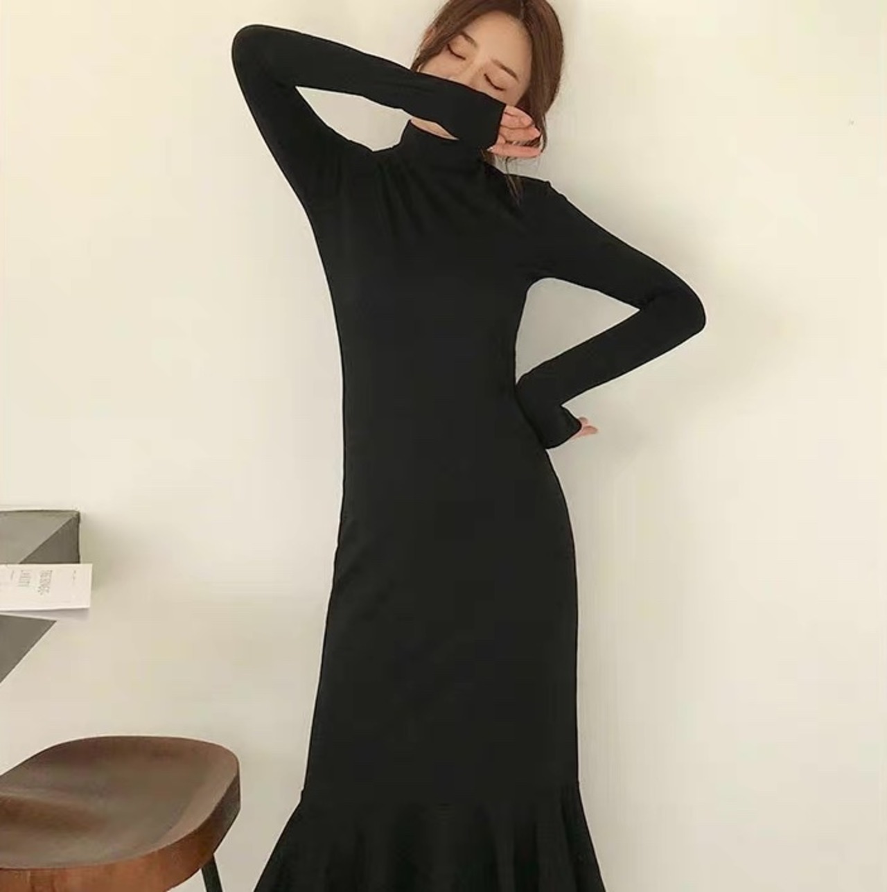 レディース ワンピース ロング 長袖 ハイネック タイト スリム マーメイド スマート フェミニン フリル かわいい 大人可愛い きれいめ シンプル 上品 おしゃれ かっこいい こなれ感 ガーリー エレガント 存在感 抜け感 ラブリー キュート ベーシック ロマンティック ナチュラル ファッショナブル 無地 デート お出かけ イベント 休日 カフェ モノトーン 楽ちん 美脚 脚長 普段使い 着回し トレンド 流行 インスタ映え 定番 XS S M L XL 2XL 小さいサイズ 大きいサイズ 黒 ブラック