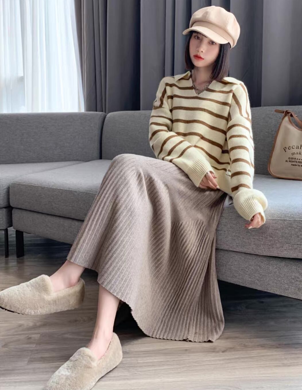 ウエストゴムで、体型カバーしながらも上品なシルエットを演出。