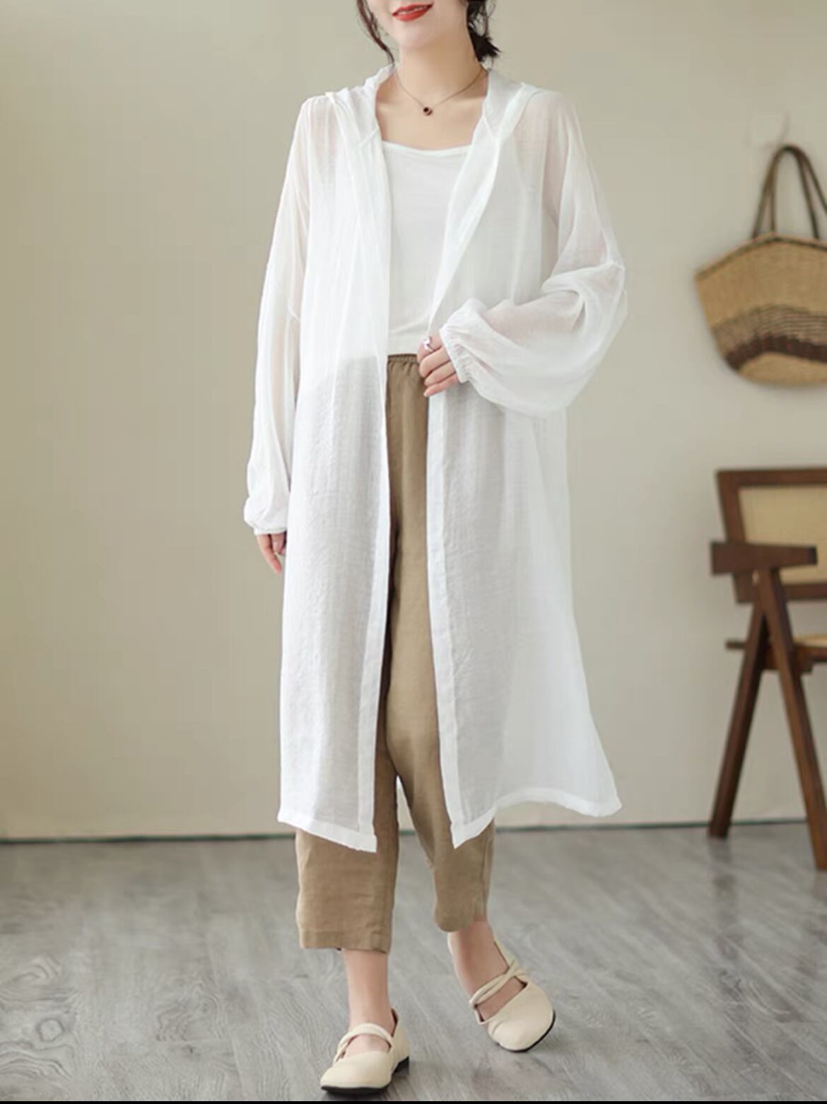 透け感フード付きカーディガンで春夏の着こなしを格上げ!