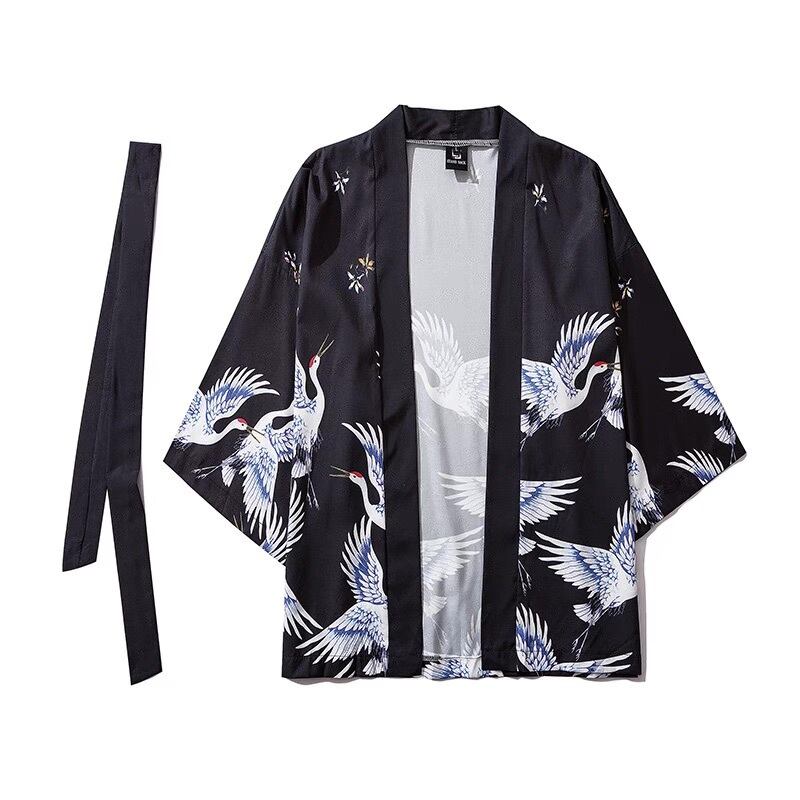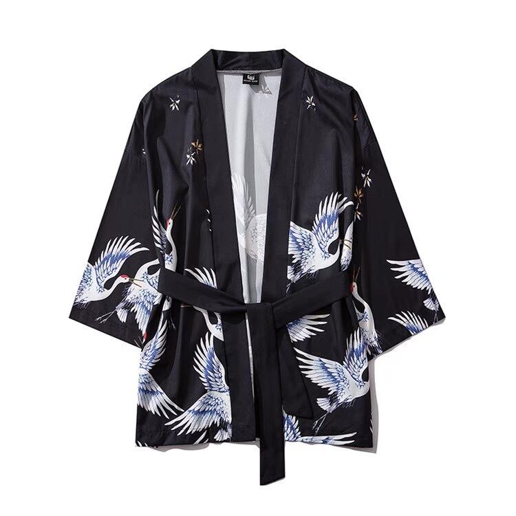 トップス 羽織 着物 前開き 浴衣 和柄 長袖 ストリート きれいめ シンプル カジュアル 上品 おしゃれ かっこいい レトロ こなれ感 ラフ メンズライク マニッシュ ボーイッシュ クール 主役級 存在感 浴衣風 クラシカル アクティブ ファッショナブル 和風 プリント 鶴 柄 男女兼用 ユニセックス お出かけ パーティー イベント 休日 ホテル コスプレ 重ね着 楽ちん 体型カバー レイヤード インスタ映え S M L XL 2XL 3XL 4XL 5XL 6XL ゆったり ゆる 黒 ブラック 青