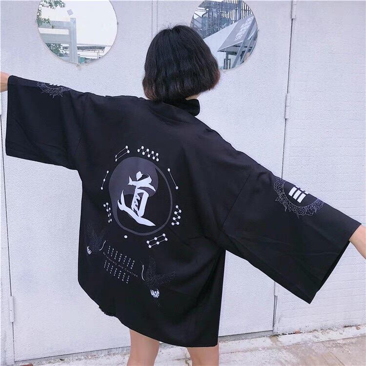 トップス 羽織 着物 前開き 浴衣 和柄 長袖 ストリート カジュアル おしゃれ かっこいい レトロ アジアン こなれ感 ラフ メンズライク マニッシュ ボーイッシュ クール 主役級 存在感 浴衣風 アクティブ ファッショナブル 和風 プリント バックプリント 文字 柄 男女兼用 ユニセックス お出かけ パーティー イベント 旅行 女子会 休日 ホテル コンサート ライブ コスプレ お花見 フェス 重ね着 楽ちん 体型カバー レイヤード インスタ映え 大きいサイズ ゆったり フリーサイズ 黒 ブラック