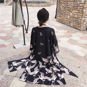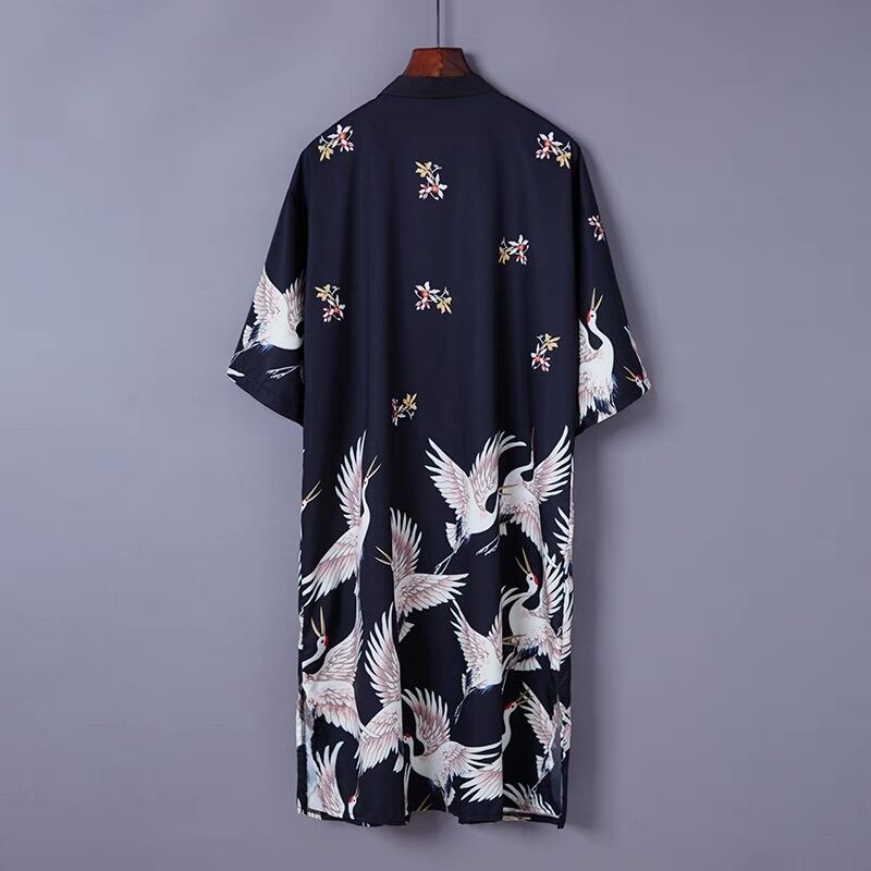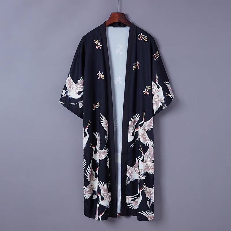 トップス 羽織 着物 前開き 浴衣 和柄 ロング 長袖 ストリート カジュアル おしゃれ かっこいい こなれ感 ラフ メンズライク マニッシュ ボーイッシュ クール 主役級 存在感 浴衣風 アクティブ ファッショナブル 和風 プリント 鶴 柄 男女兼用 ユニセックス お出かけ パーティー イベント 旅行 女子会 休日 ホテル コンサート ライブ コスプレ お花見 フェス 重ね着 楽ちん 体型カバー レイヤード インスタ映え 大きいサイズ ゆったり フリーサイズ 黒 ブラック ベーシックカラー 大人カラー