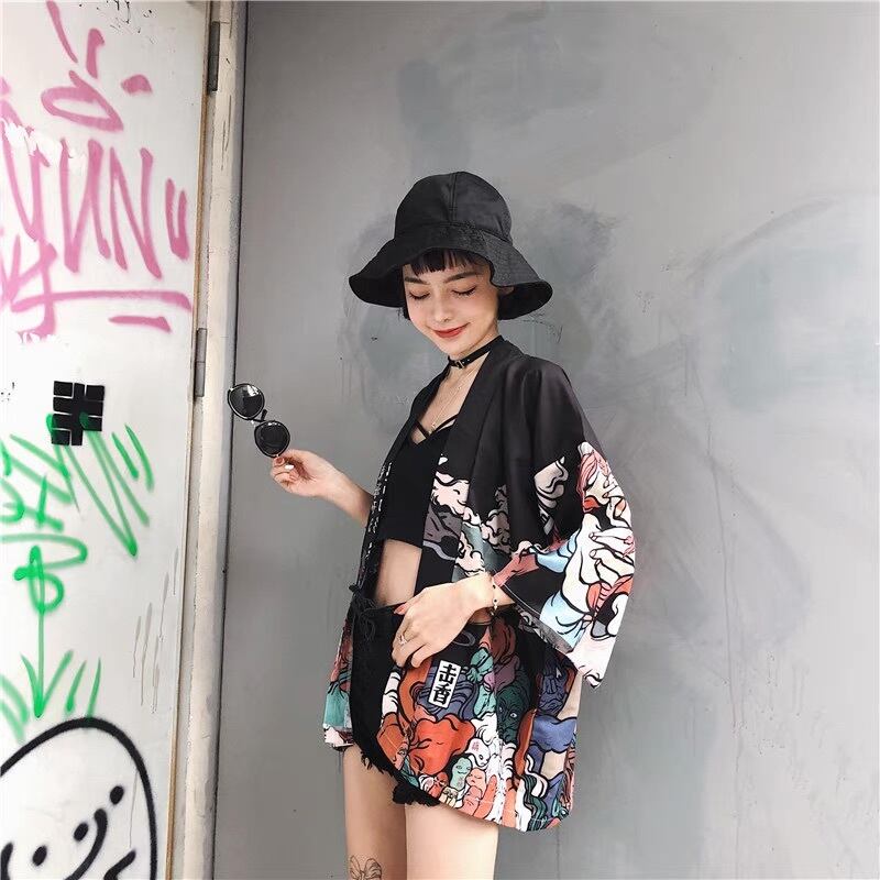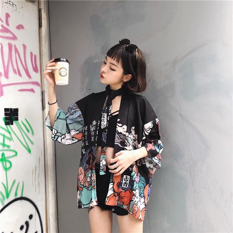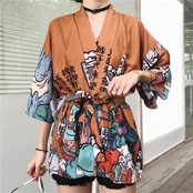 トップス 羽織 着物 前開き 浴衣 和柄 7分袖 ストリート 紐付き カジュアル おしゃれ かっこいい こなれ感 ラフ メンズライク マニッシュ ボーイッシュ クール 主役級 存在感 浴衣風 アクティブ ファッショナブル 和風 プリント 柄 男女兼用 ユニセックス お出かけ パーティー イベント 旅行 女子会 休日 ホテル コンサート ライブ コスプレ お花見 フェス 重ね着 楽ちん 体型カバー レイヤード インスタ映え 大きいサイズ ゆったり フリーサイズ 黒 ブラック 茶色 ブラウン ベーシックカラー