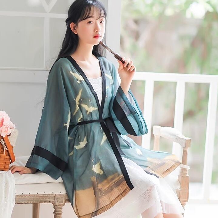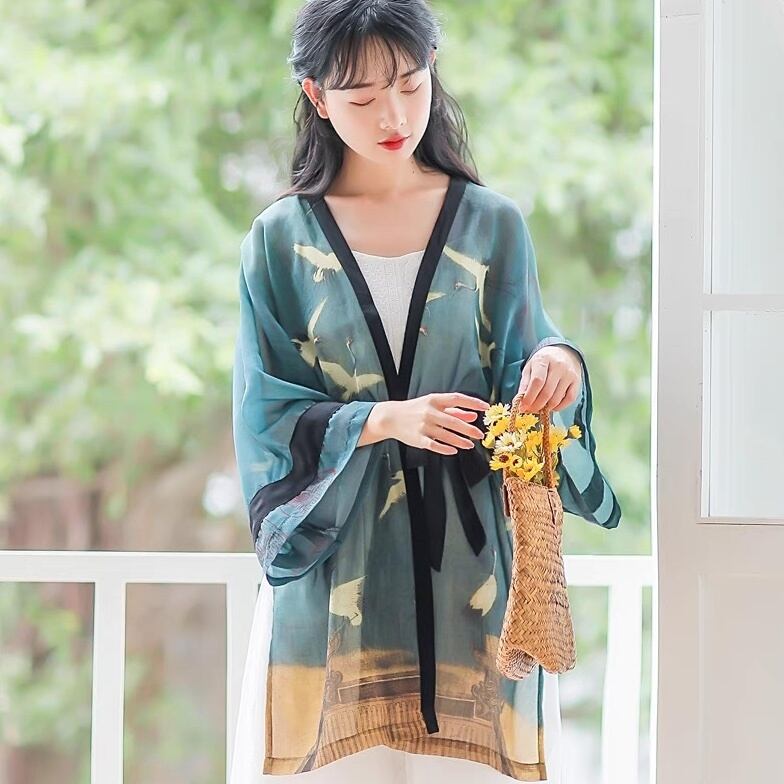 トップス 羽織 着物 前開き 浴衣 和柄 長袖 フェミニン ストリート 透け感 シースルー 紐付き 大人可愛い カジュアル おしゃれ かっこいい レトロ アジアン エスニック こなれ感 ラフ メンズライク マニッシュ ボーイッシュ クール 主役級 存在感 浴衣風 アクティブ ナチュラル ファッショナブル 和風 プリント バックプリント 鶴 お出かけ パーティー イベント 旅行 女子会 休日 ホテル コンサート ライブ コスプレ お花見 フェス 重ね着 楽ちん レイヤード S M L XL 緑 グリーン 赤
