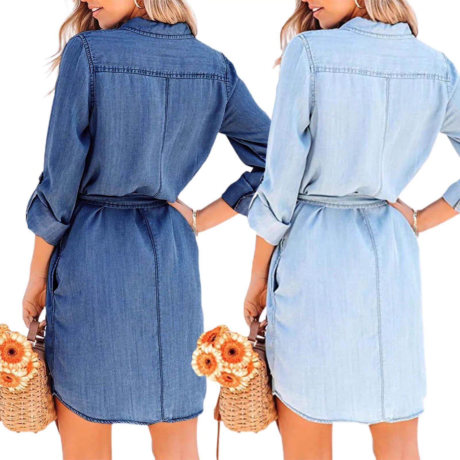 レディース ワンピース プルオーバー シャツワンピ デニム 前開き ミニ ショート 長袖 フェミニン ブルーデニム ベルト付き かわいい 大人可愛い きれいめ シンプル カジュアル おしゃれ こなれ感 ガーリー ルーズ ヴィンテージ ラブリー キュート ベーシック アクティブ ロマンティック ナチュラル ファッショナブル 無地 お出かけ 旅行 女子会 休日 ショッピング 楽ちん 暖かい 普段使い 着回し トレンド 流行 インスタ映え 定番 S M L XL フリーサイズ 水色 ブルー ネイビー 青 紺